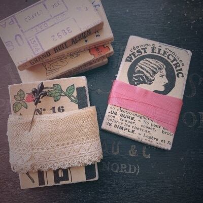 ヴィンテージ・アンティークのチケットや雑誌や楽譜、メモ用紙を使用。